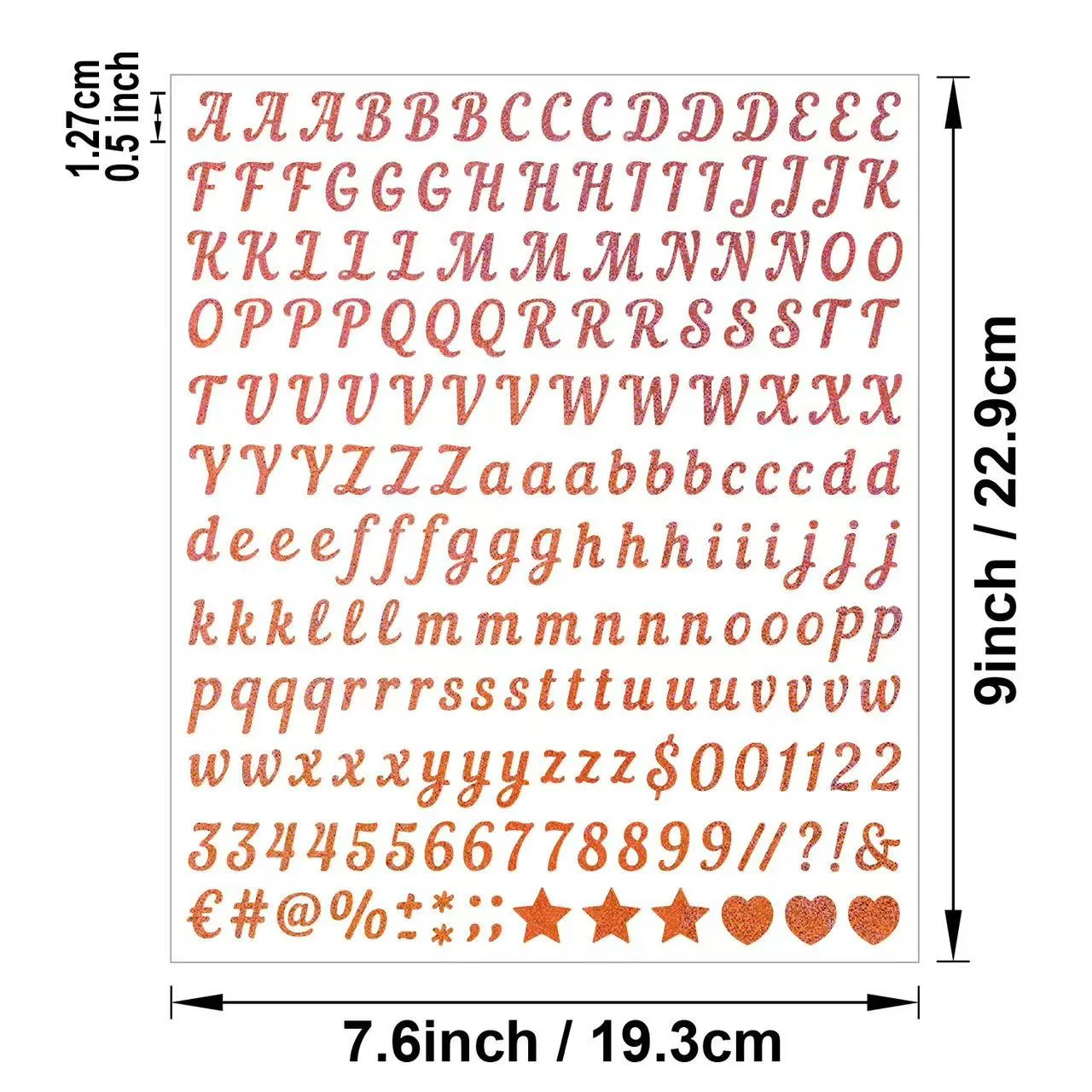 Nó bao gồm một bộ hoàn chỉnh gồm 26 chữ cái tiếng Anh viết hoa và số 0-9, cùng với các ký hiệu cơ bản, cho phép kết hợp tự do để đánh vần các từ, tên, số, v.v. Nó bao gồm nhiều tình huống khác nhau như trang trí nhật ký, từ chủ đề bữa tiệc, trang trí quà tặng và tự làm văn phòng phẩm, đáp ứng nhiều nhu cầu sử dụng chỉ với một nhãn dán.