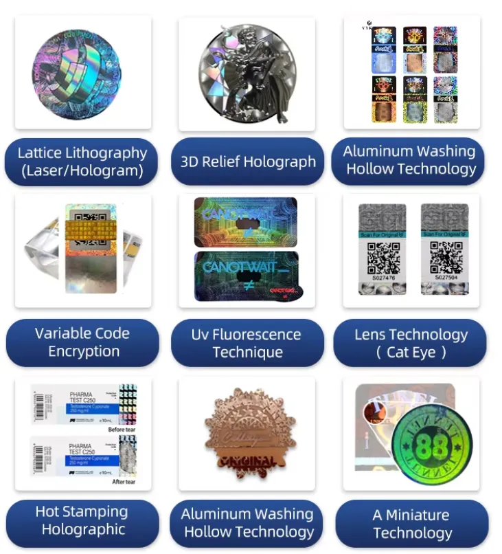 Chúng tôi thiết kế nhãn chống giả và các nhãn hiệu bảo mật rõ ràng và giả mạo kết hợp xác minh kỹ thuật số, bảo mật cao & công khai &