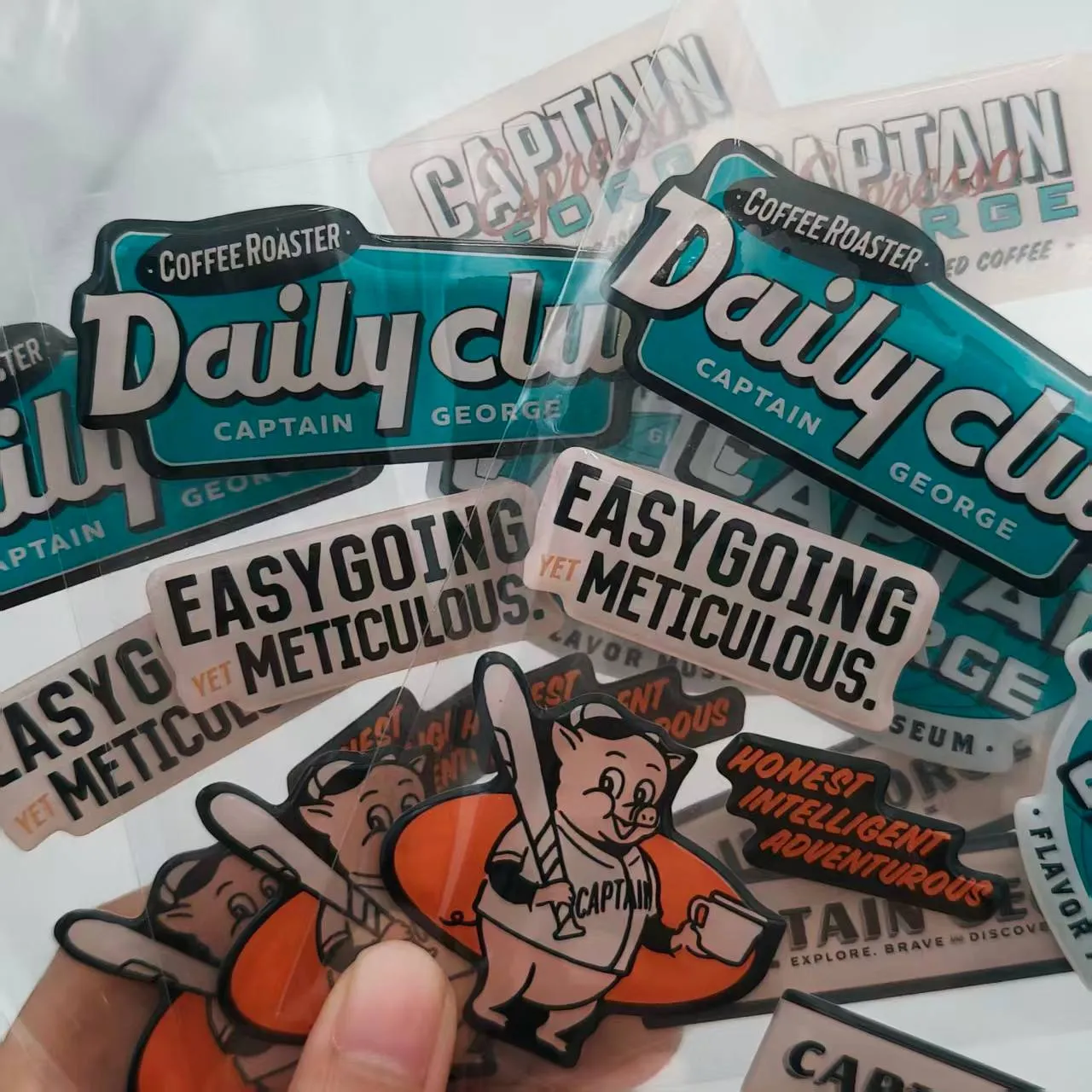 3D: Nhờ lớp nhựa epoxy trong suốt được áp dụng trên thiết kế in, những nhãn dán này có hình dạng ba chiều nổi lên. Điều này bổ sung thêm chiều sâu xúc giác và hình ảnh mà các nhãn dán phẳng không thể sánh được, khiến chúng trở nên nổi bật hơn khi nhìn thoáng qua.