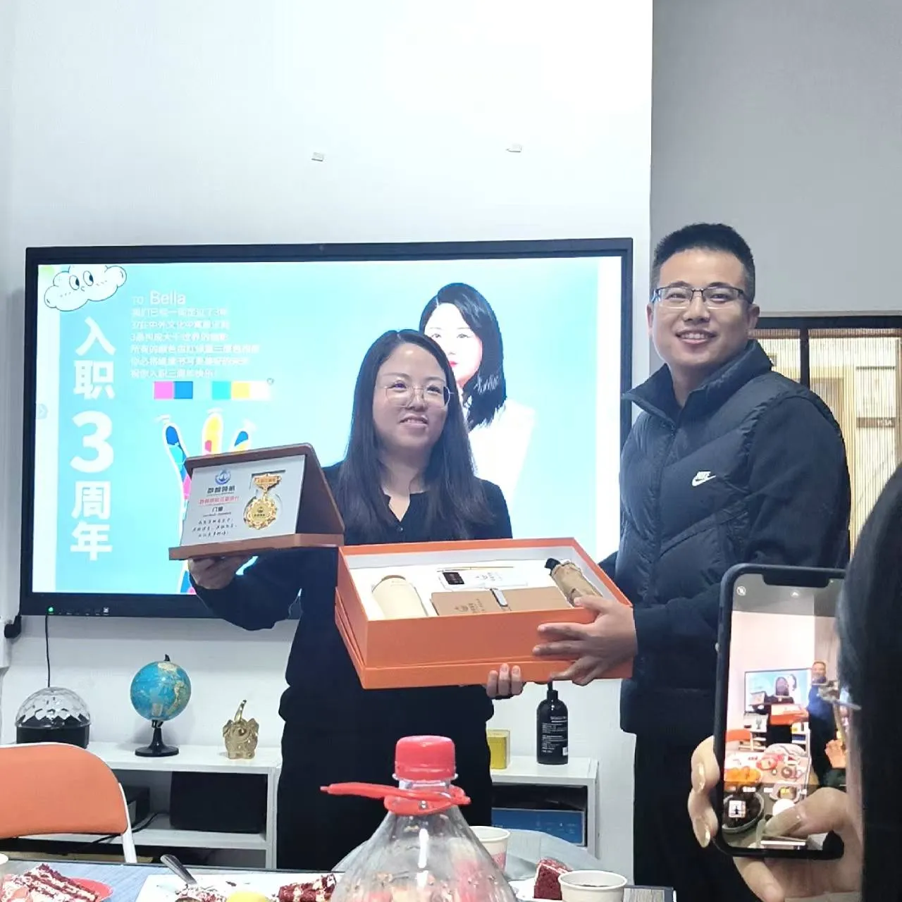 Thật là một điều bất ngờ thú vị, Sếp Gao còn đích thân tặng những món quà kỷ niệm công việc tuyệt đẹp cho Tom và Ella cũng như Giám đốc Bella. Những mã thông báo đặc biệt này là sự ghi nhận chân thành cho những đóng góp của họ trong những năm qua và mang theo những lời chúc tốt đẹp nhất của chúng tôi cho sự phát triển liên tục của họ cùng công ty.
