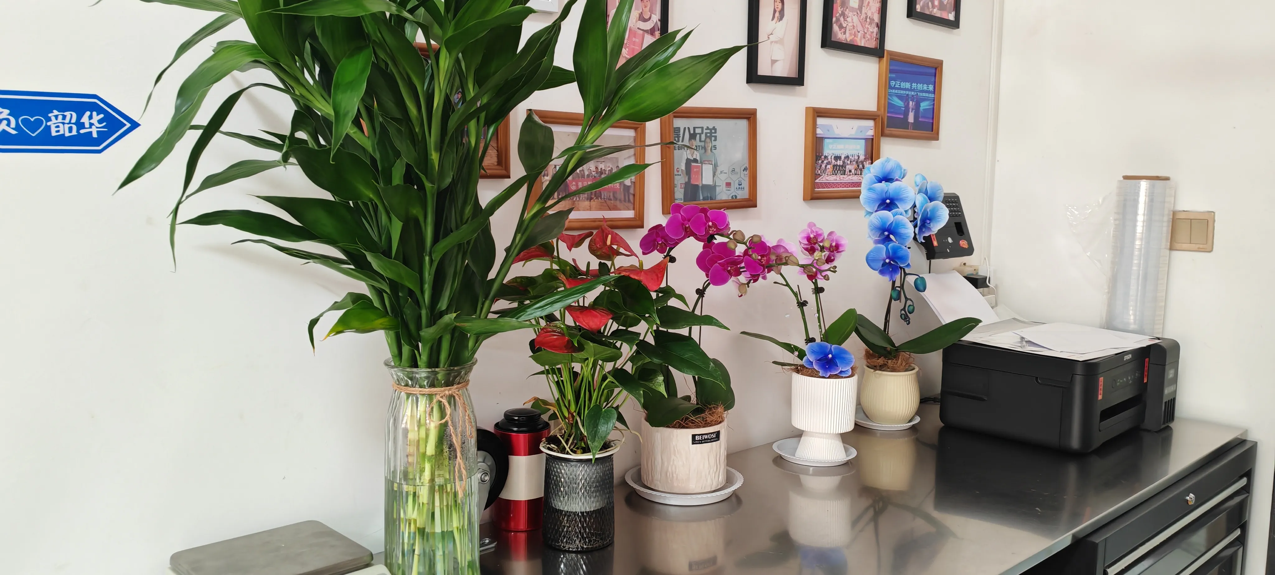 Đi vàoGói JOJOvăn phòng. Có ba chậu lan hồ điệp ở hai bên bàn tiếp tân. Lá của chúng xòe ra và thẳng tắp giống như những con bướm sắp bay đi. Chúng tạo thêm nét sang trọng và duyên dáng cho công ty. Cây huyết dụ sanderiana xanh xua đi sự buồn tẻ của không gian văn phòng. Nhiều nhân viên bị thu hút bởi những thay đổi ở đây ngay khi đến công ty. Họ dừng lại để thưởng thức và chụp ảnh bằng điện thoại di động.
