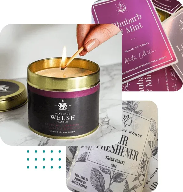 Định hình: Liên quan đến việc cắt nhãn thành các hình dạng tùy chỉnh thay vì hình chữ nhật tiêu chuẩn. Nhãn định hình nổi bật trên lọ nến và phù hợp với đặc điểm nhận diện thương hiệu độc đáo.