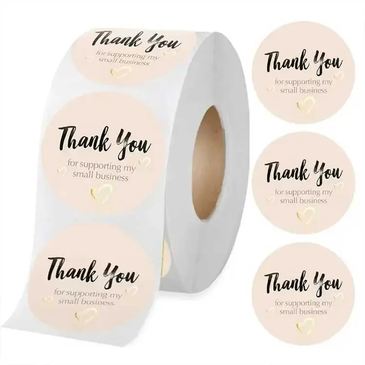 Nhãn dán cảm ơn hỗ trợ mua phiên bản chung và dịch vụ tùy chỉnh. Logo thương hiệu, khẩu hiệu độc quyền, mã QR hoặc hoa văn cá nhân hóa có thể được in trên chúng để tạo điều kiện quảng bá thương hiệu và thể hiện cảm xúc.