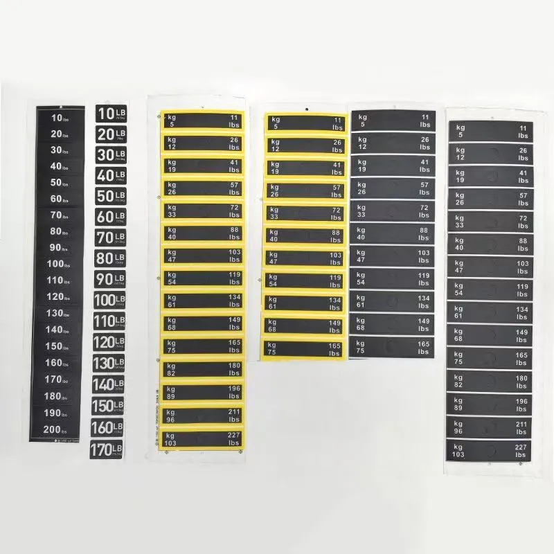 Được chế tạo từ vật liệu chất lượng cao, những miếng dán này có khả năng chống mài mòn khi sử dụng hàng ngày. Văn bản in vẫn sắc nét và không bị mờ trong suốt thời gian sử dụng của thiết bị thể dục, đảm bảo hiệu suất lâu dài. Với vạch cân nặng rõ ràng, người dùng có thể theo dõi tiến độ tập luyện của mình tốt hơn và đặt ra mục tiêu tập luyện, quản lý tập luyện một cách khoa học.